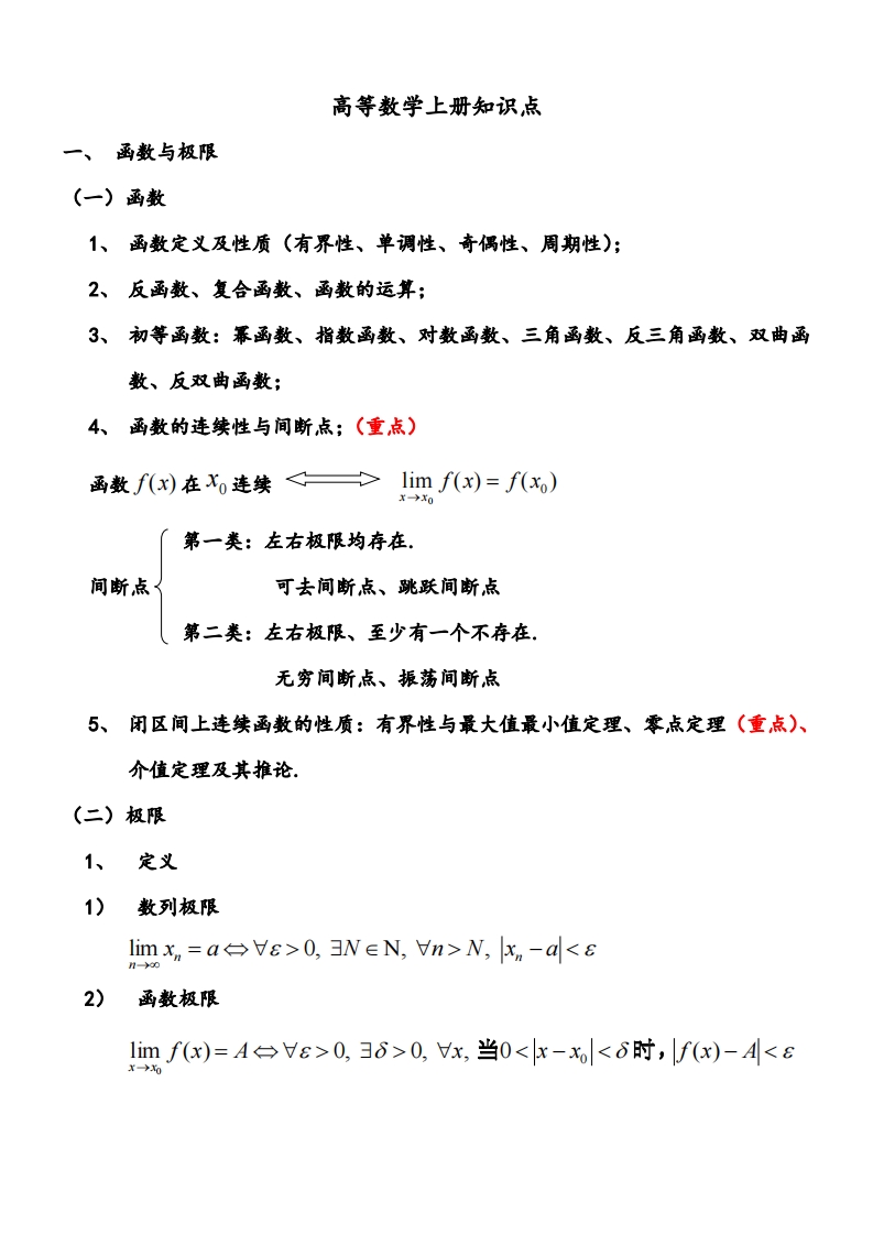 首页学科资料理工类数学《高等数学》上册重要知识点