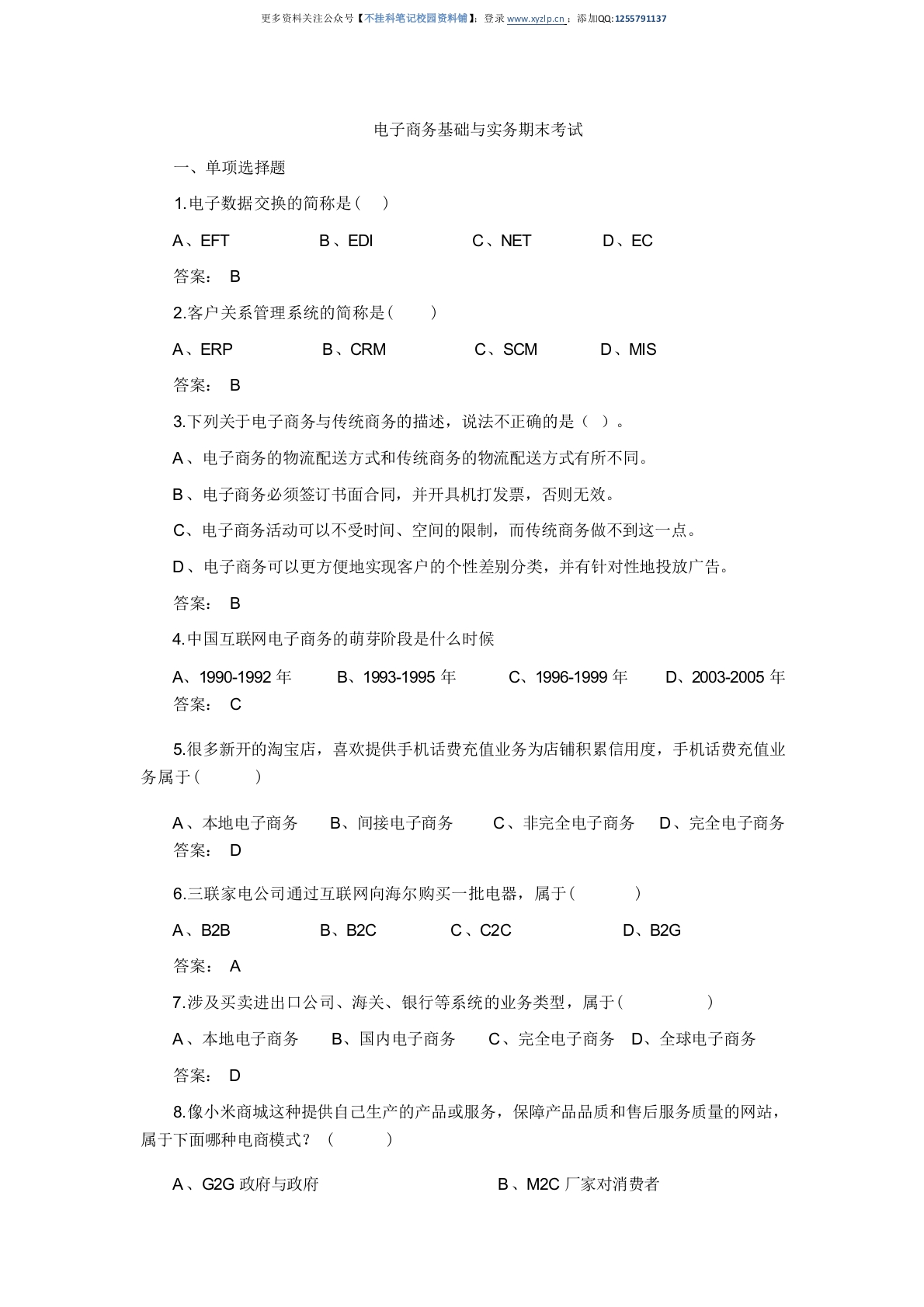 首页学科资料理工类电气自动化电子商务基础与实务(含活页练习册)习题答案