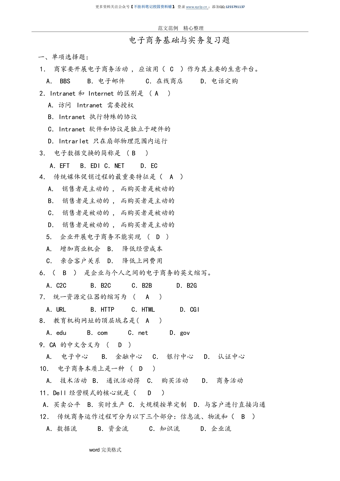 首页学科资料理工类电气自动化电子商务基础与实务总复习试题