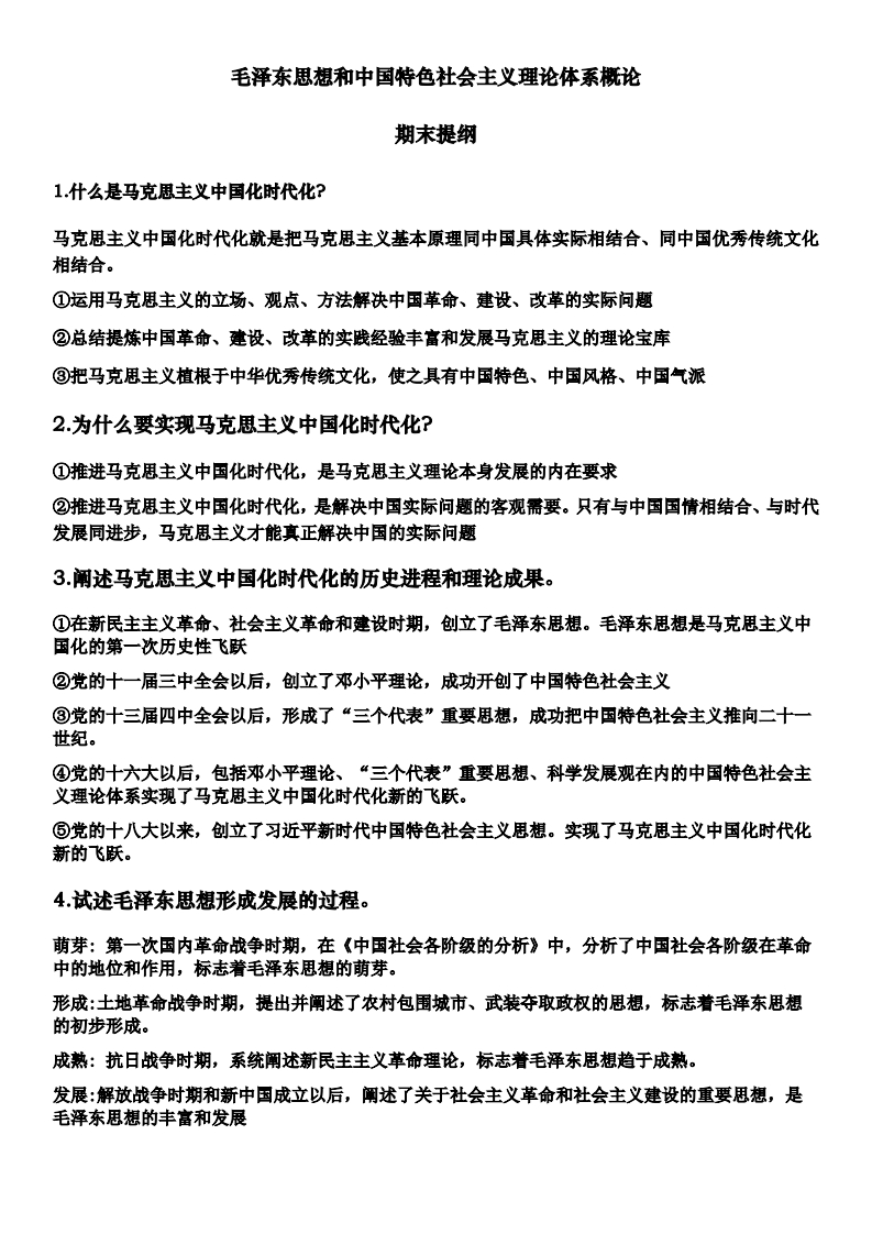大学《毛概》期末重点复习提纲